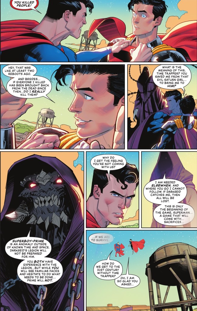 I must say, I never wanted to see Prime again after he got his happy ending. But darn it, writer Joshua Williamson has his comeback making sense within the context of the story, and the interaction between the two Clarks is very entertaining. With the stakes so high, Superman doesn’t dwell on the meta-aspect of Prime’s powers, concentrating on getting ever closer to Darkseid, who he’s assuming is alive.