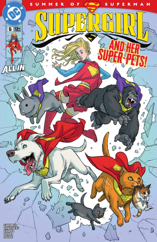 Supergirl takes Lesla Lar to Metropolis for a spot of superheroine training, leaving Lena Luthor to mind the Midvale store. She’s also looking after Super-Pets Krypto, Streaky, Kandy and Tinytano… all of whom abscond the second the girl genius’s back is turned.