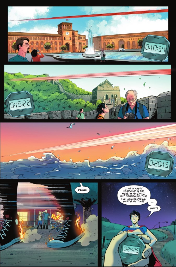 It’s the beginning of his superhero career and Superboy is testing his limitations. Today, it’s super-speed when he’s in flight.
