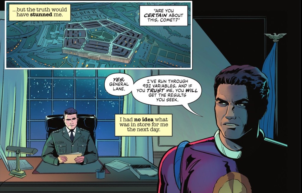The soda session is cut short when Superboy’s self-appointed mentor. Captain Comet, summons him to a New York laboratory.