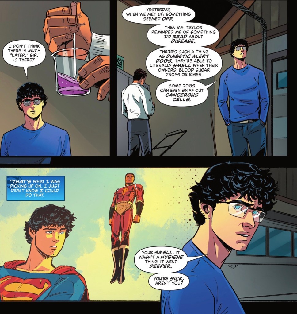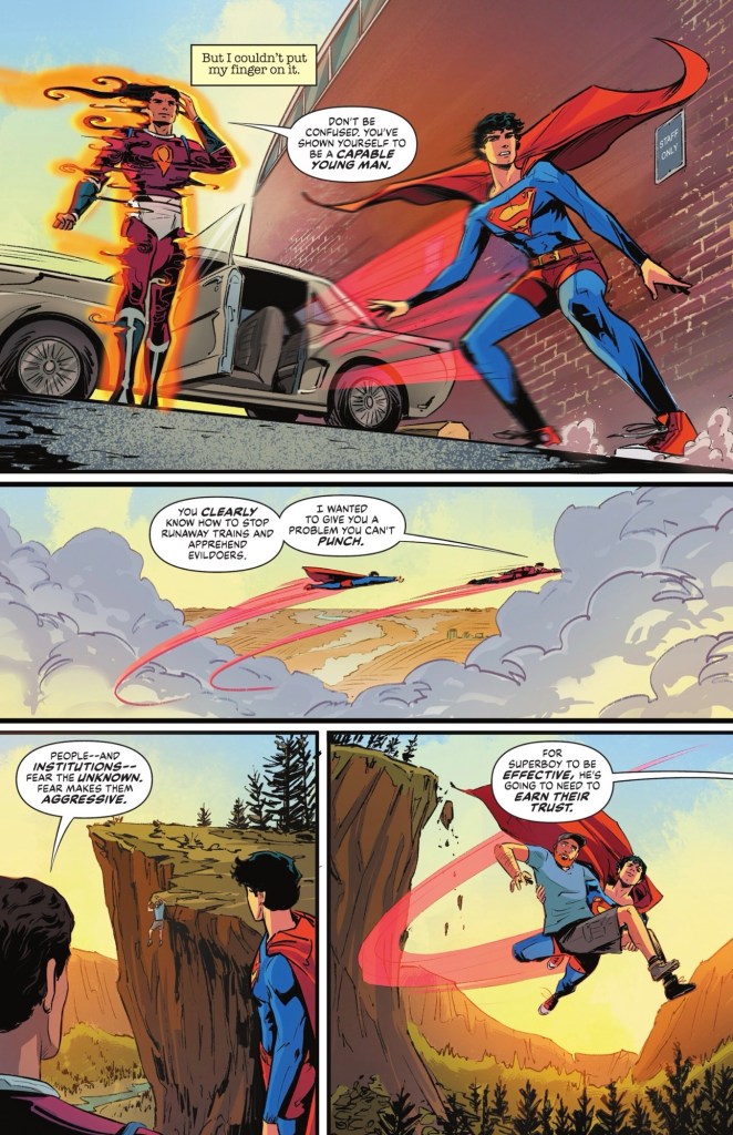 Which isn’t to say I didn’t enjoy the latest script from Mark Waid. It’s very readable and Superboy shines. I was fascinated to see Waid bring back the ‘soul vision’ power first (only?) seen in Waid and Leonil Francis Wu’s Superman: Birthright maxi-series over two decades ago. I wonder if Clark will be spotting auras more often from here on in.