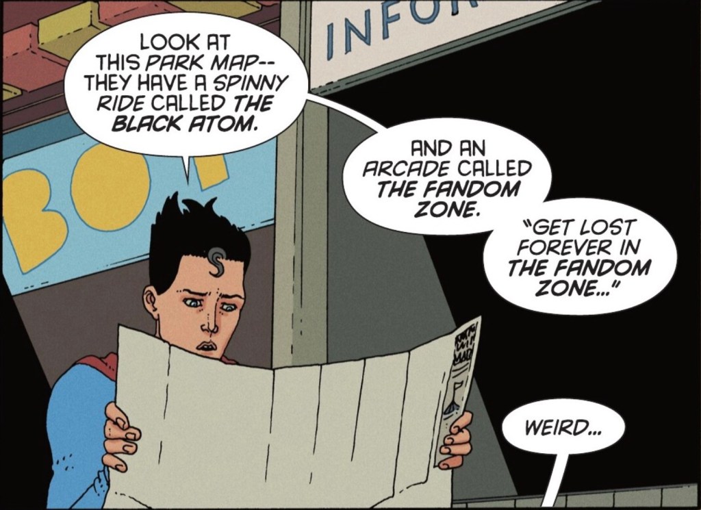 Superman, already suspicious that a flyer about the park was delivered to Billy’s house on a Sunday, is even more worried when he sees the venue map.