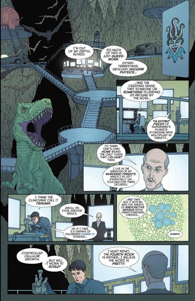 Bruce doesn’t think rainbow Kryptonite is pretty nice, so much as pretty enigmatic, and possible dangerous, having made a surprise discovery.