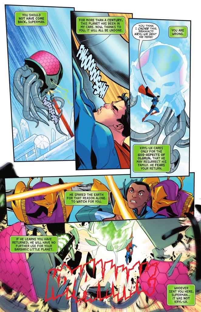 Catapulted into a far-flung future and determined to find his way home, Superman has been waylaid by a version of computer tyrant Brainiac.