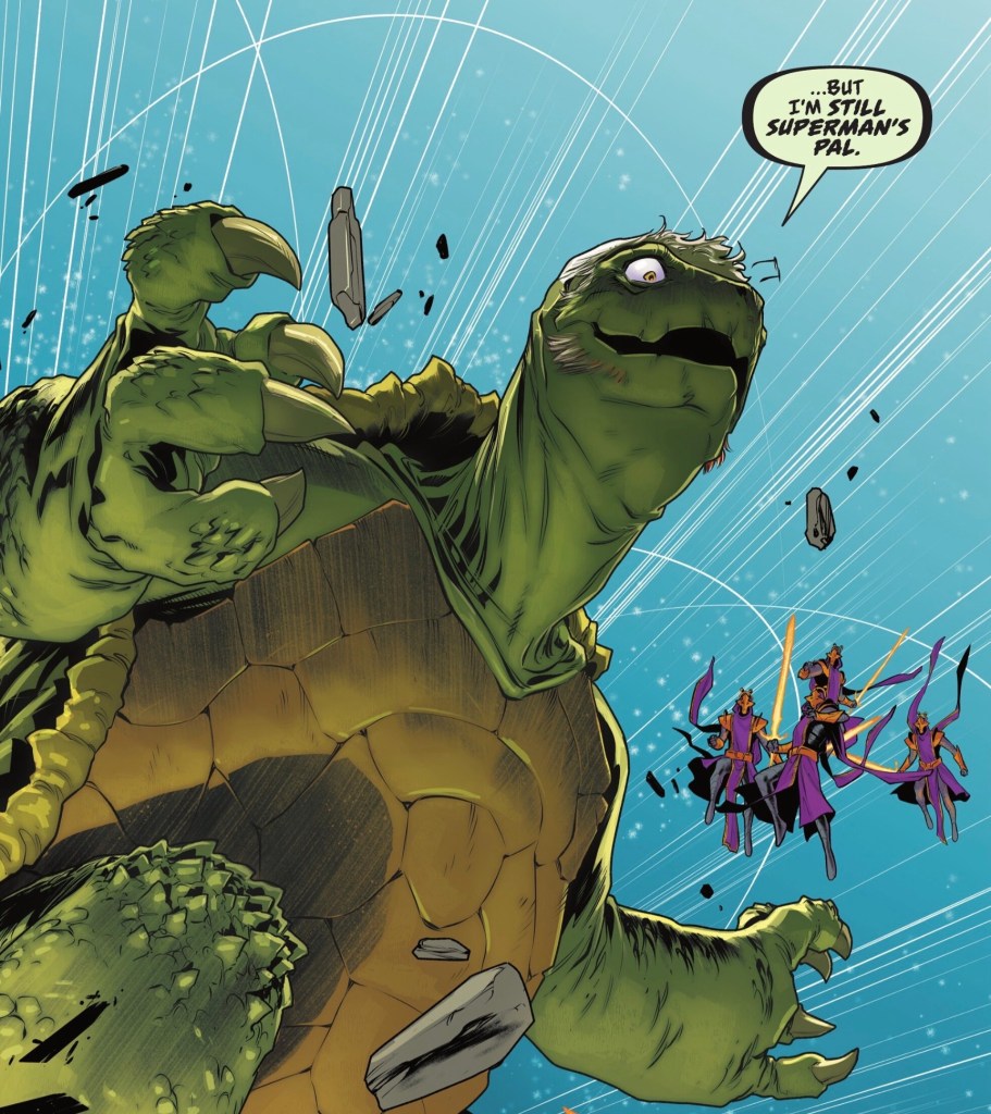 Superman’s Oldest Pal Jimmy Olsen showed up last issue looking elderly when he should be long dead. Tortoises are long lived, but not that long, and he was never Giant Tortoise Olsen, he was Giant Turtle Olsen – so the mystery remains unsolved.
