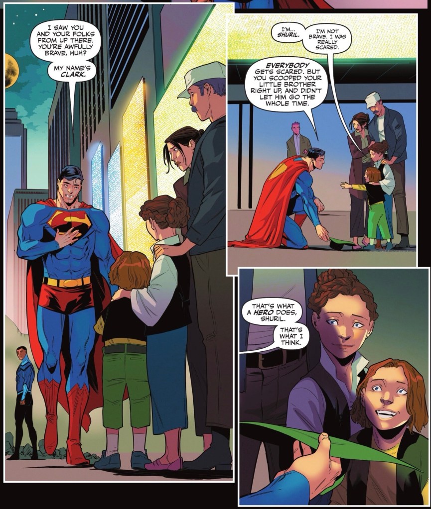 The Book of El narration this issue rhymes, and it’s cleverly done, but seems a bit random. The two pages of supplementary text following the comic story feature straightforward, impassioned prose from Lois Lane, writing in 2025 after her husband vanished, and it’s hugely enjoyable.