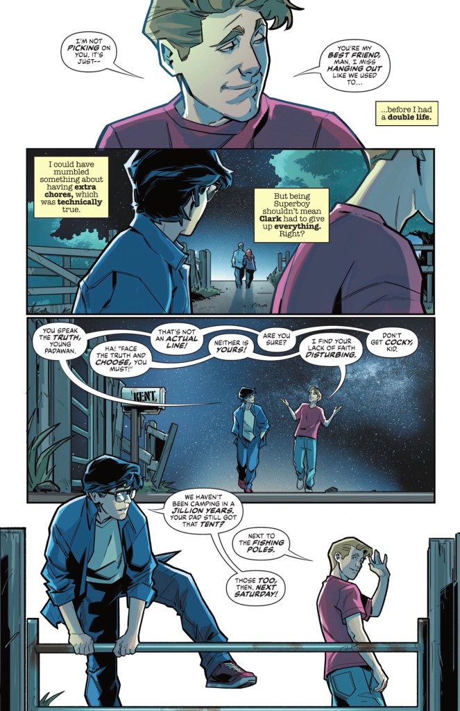 It’s a busy week for Superboy, and an exciting one, but none of it made my heart leap so much as a scene with Clark’s best pal Pete Ross, who’s confused as to why his friend has had less time for him of late.