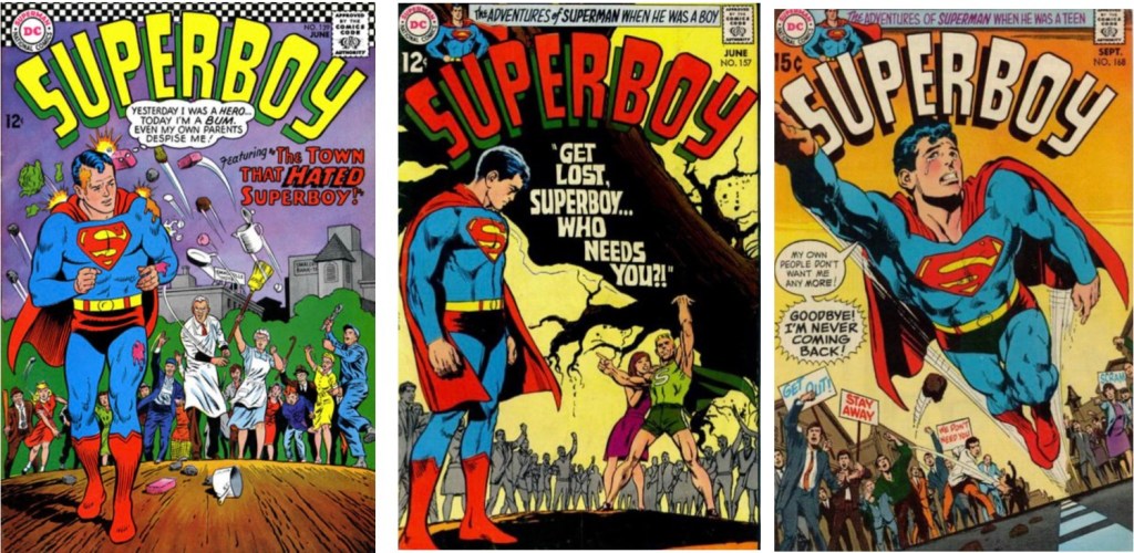 As for Ryan Sook’s cover, it’s gorgeous, just look at the detail on the arms and hands! And it follows a fine tradition of citizens turning on Superboy. But come on, DC, change that ‘Superman’ by the logo to ‘Superboy’.