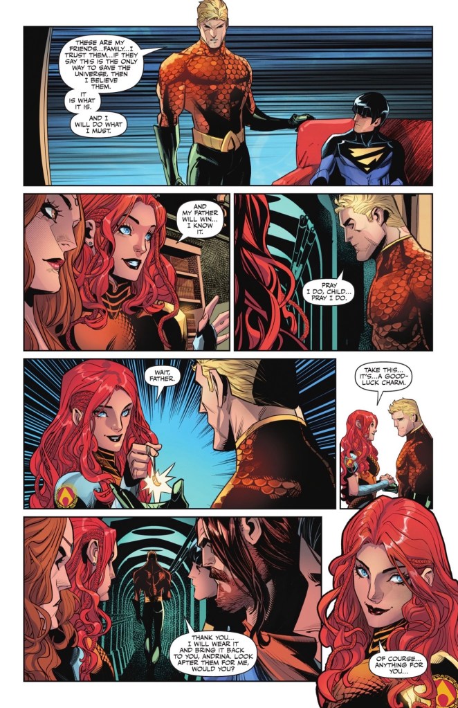 He’s not been reading Aquaman’s book, so doesn’t know Arthur has recently had a big power-up.