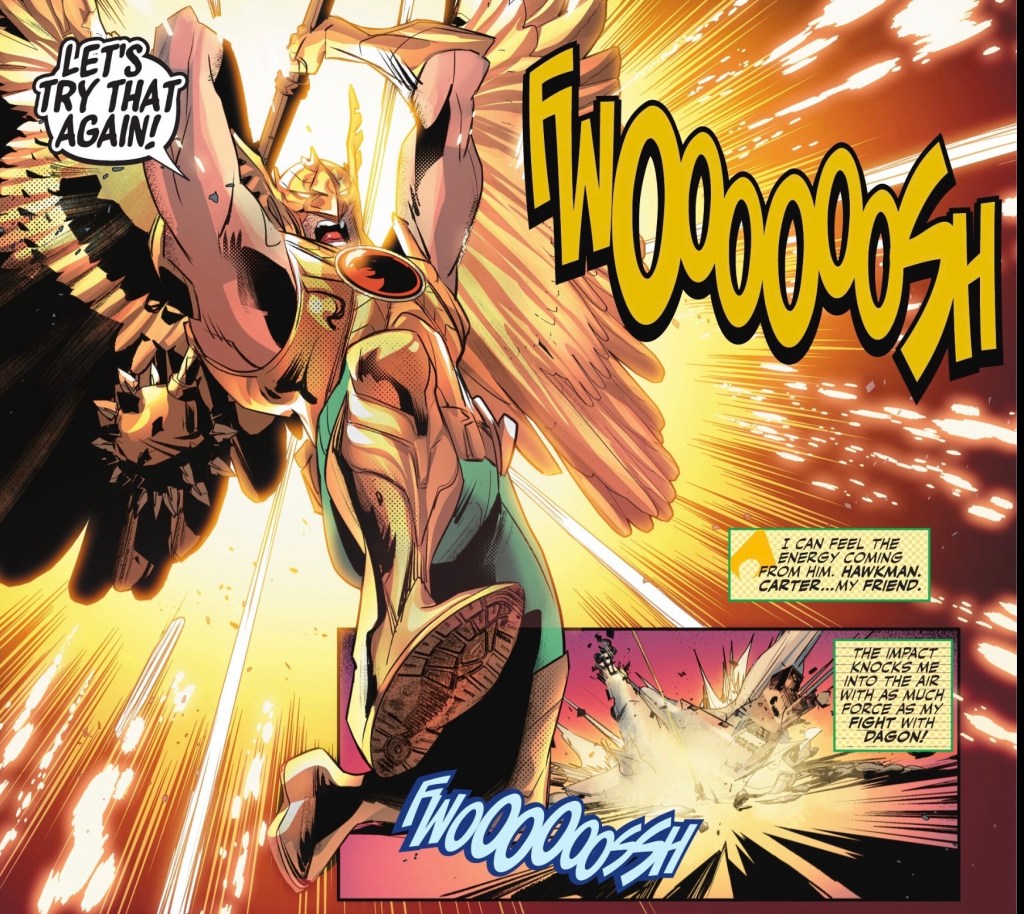 And lo, Hawkman is cast out into space. Or perhaps he’s in some post-death limbo. Who knows?
