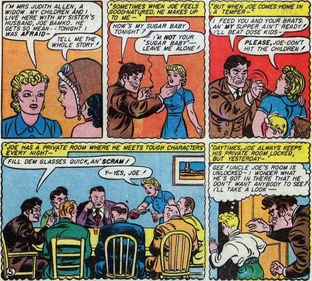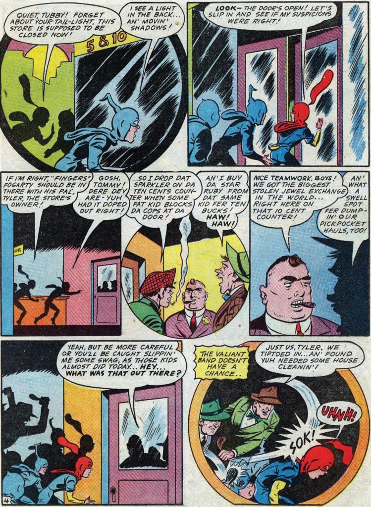 Also appearing in this issue are Little Boy Blue and the Blue Boys, in a fairly typical caper involving a broken bicycle light and a gem laundering racket in a dime store.
