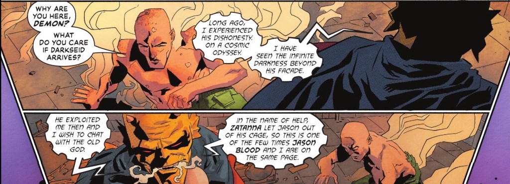As for Etrigan, for an ancient demon with untold millennia of battle experience, he’s taken out by Lex rather easily.