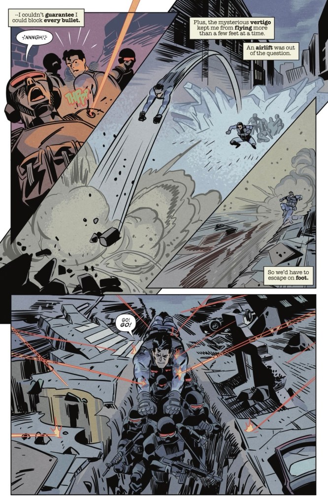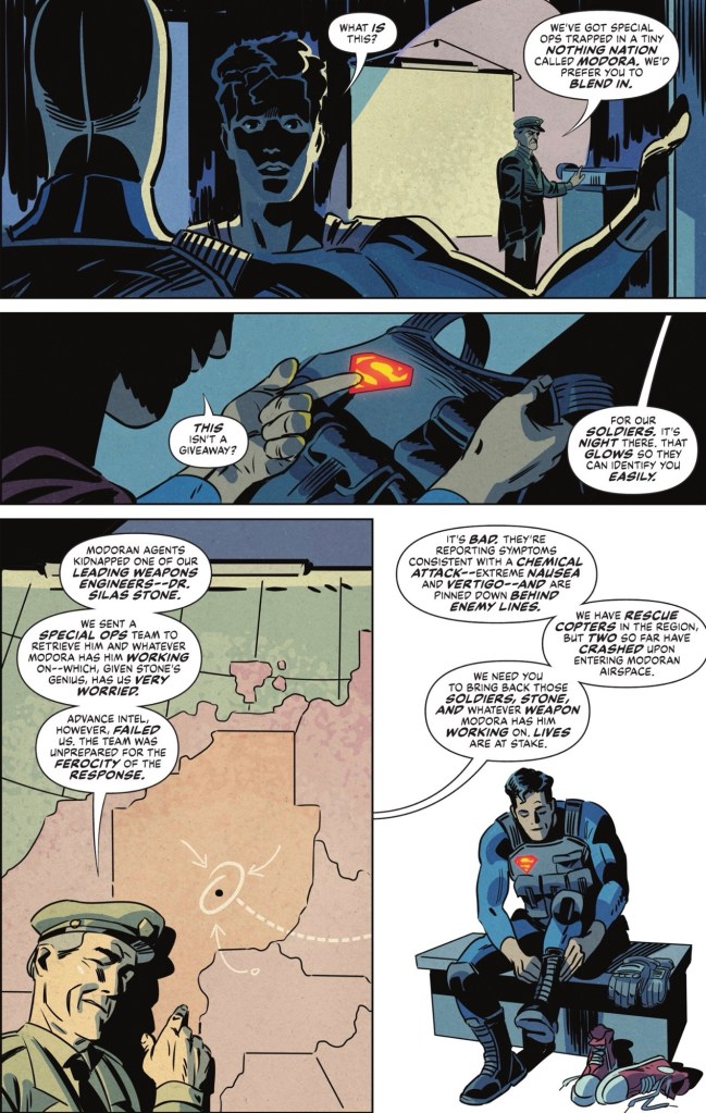 In Modora, Superboy finds his hearing vanishes, but he gets on with saving Lane’s soldiers from snipers.