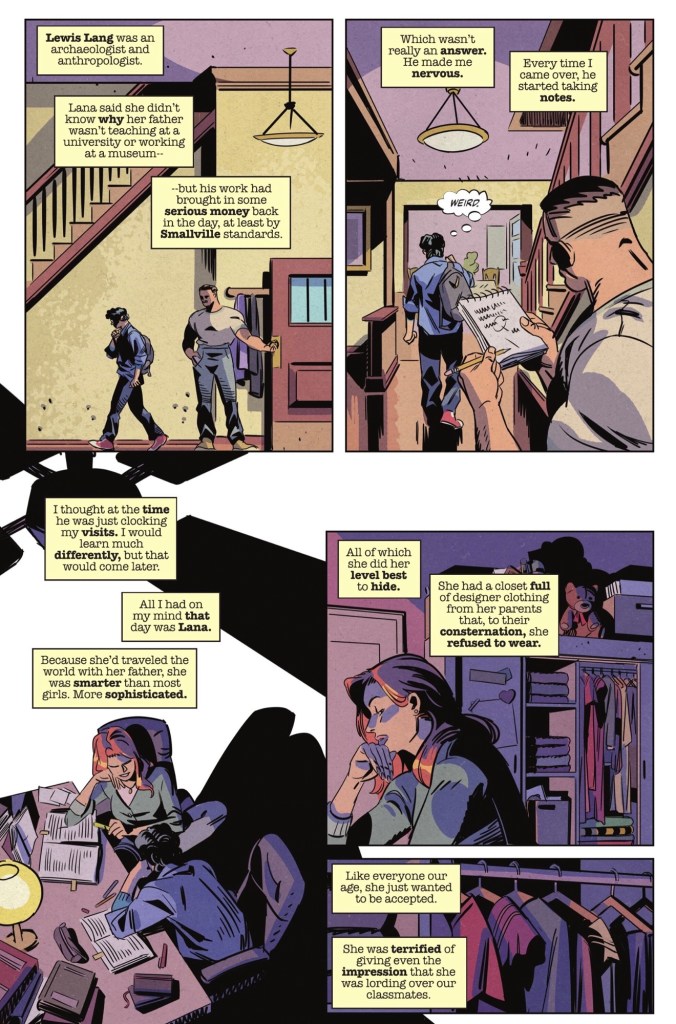 Before that, though, present day Clark’s narration tells us of a time he visited Lana Lang so they could do homework together, being greeted by her father.