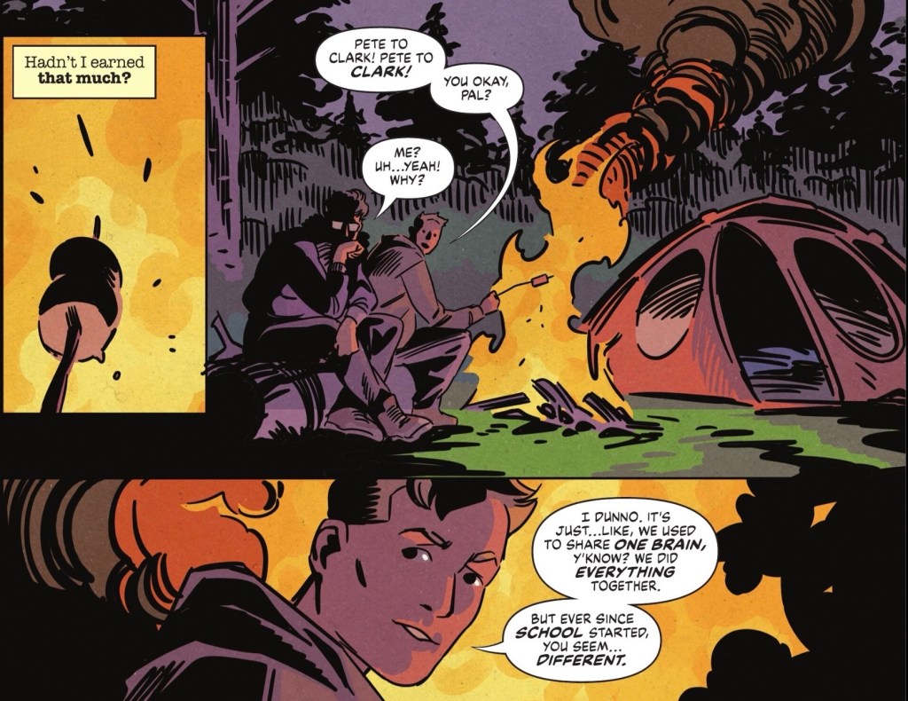 Soon afterwards, Clark joins pal Pete Ross for a camping trip in the woods outside Smallville, and his friend has a question.