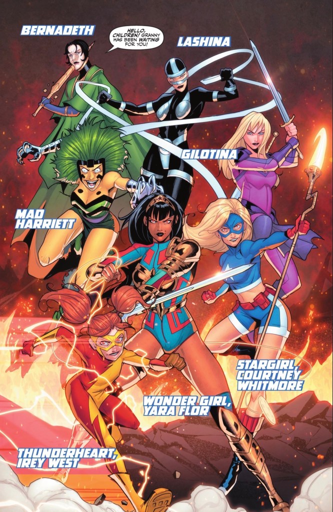 One thing that’s definitely missing is a brief line telling us when and how Stargirl, Thunderstrike and Yara Flor were taken and brainwashed by Granny Goodness – it’s not like these three are lightweights. Also, Jon tunes into his electric blue powers at one point, but they’re neither acknowledged nor explained – Adams and editors Marquis Draper and Brittany Holzherr should remember that not everyone follows every comic.