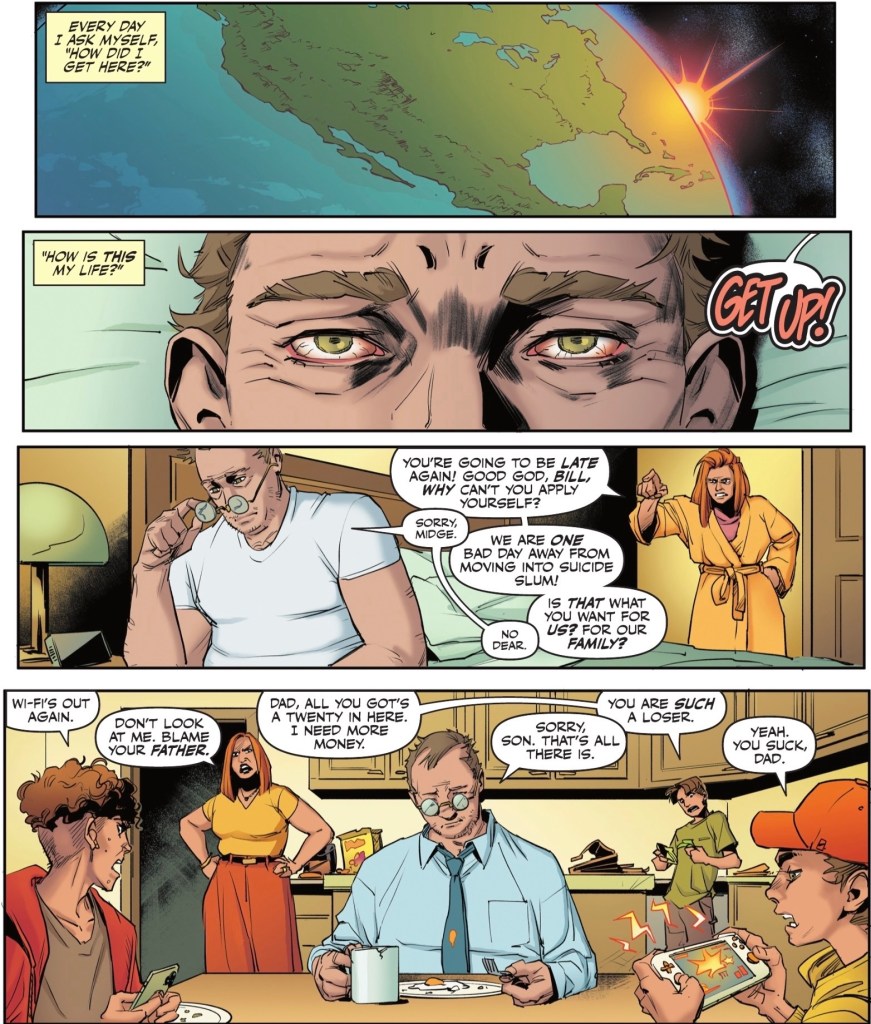 This comic has a second story, not advertised on the cover. It’s by Dan Slott, a writer who has more hits than misses in my eyes, and it’s about a chap named Bill who has a truly horrible family.