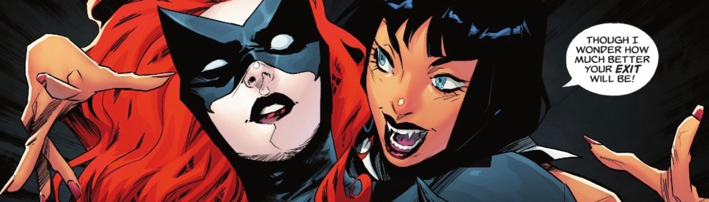 Batwoman has a terrible blind date with Vampirella, another denizen of Dynamite comics.