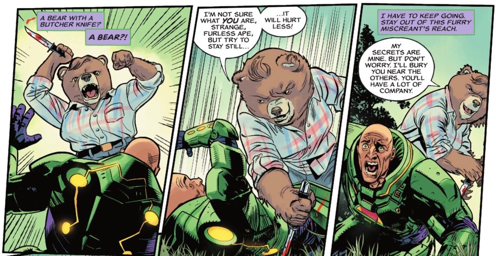 IDW allows Samantha Strong, the teddy bear no one should try to cuddle, from Beneath the Trees Where Nobody Sees, to meet Lex Luthor.