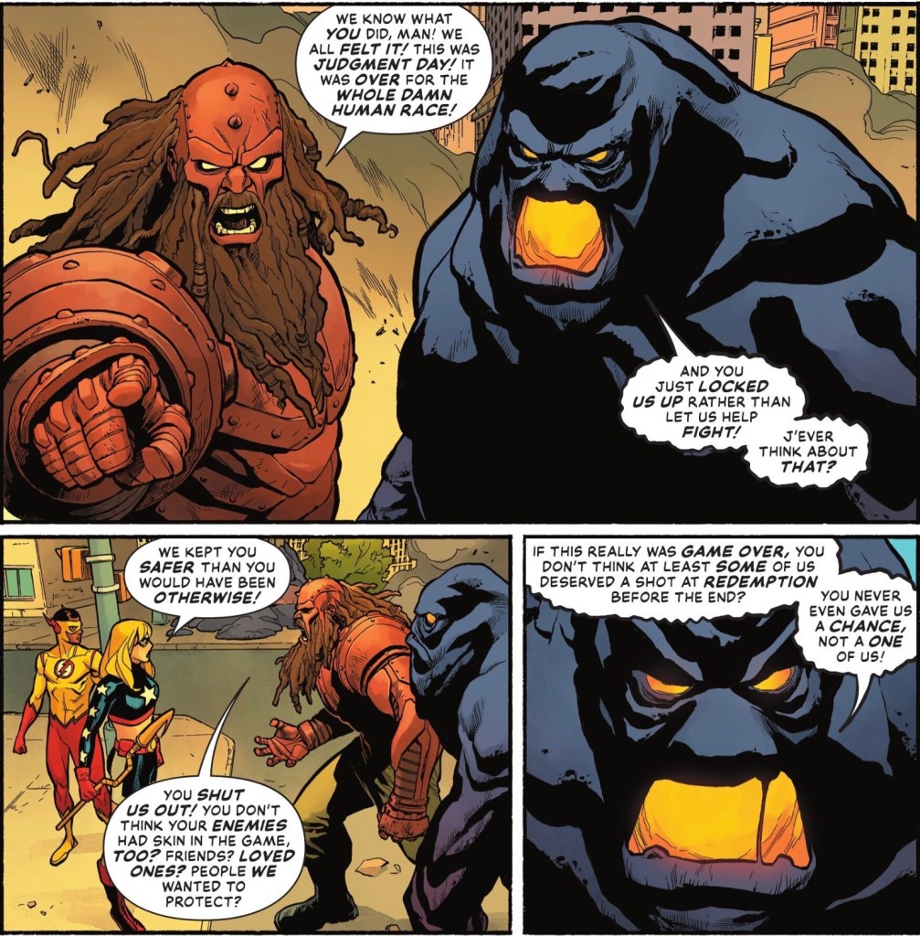 Of course not, why even consider it, you Bat-numpty. Yes, look into a rehabilitation programme for super-criminals who have served their sentence and wish to go straight, but just let everyone – including the worst, most dangerous people on the planet – go free and represent the League? Also, you don’t have the legal remit to decide who goes to jail and who goes free.
