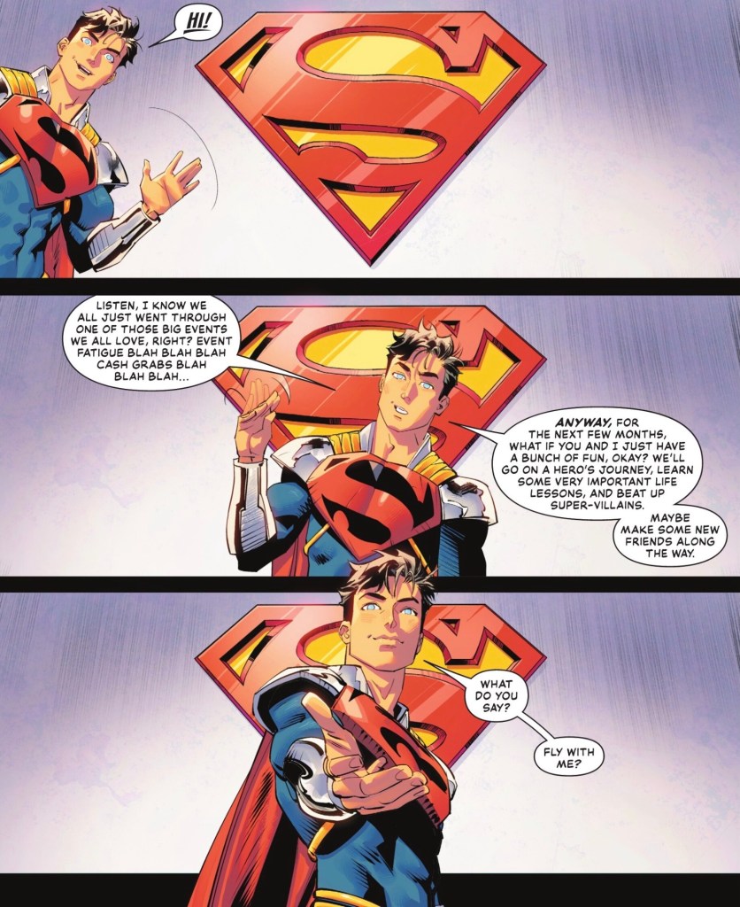 Superboy Prime is ready for his close-up. With Superman off somewhere in the wake of DC KO, he’s ready to hold the fort in Metropolis. The lifelong comics fan has interacted with his heroes in the Earth 0 realm several times and made a right pig’s ear of it – think insults and mass murder. But, several universal resets later, he reckons he’s not that boy…