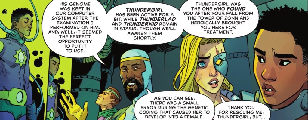 Kara is growing ever more disturbed and angry by what she’s learning. And finding out Kim-Da has been cloning without permission, with ‘subjects’ Thundergirl, Thunderlad and Thunderkid about to be sent to murder Lesla-Lar, Black Flame and their followers, only makes her angrier.