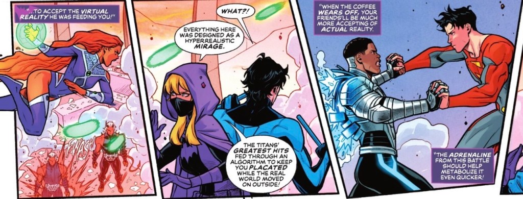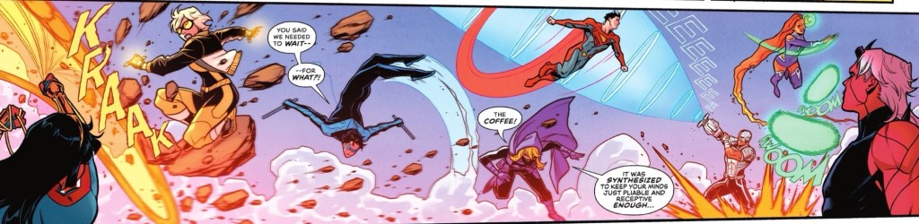 Wake up and smell the coffee, that’s the advice Nightwing took very literally last issue when he noticed the days and nights at Titans Tower were seeming very repetitive.
