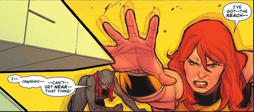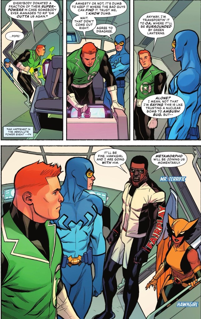 … hang on, where is the Element Man? Mr Terrific says he’s on the Oa mission, we see the spacecraft after take off, but there’s no sight of Rex Mason.